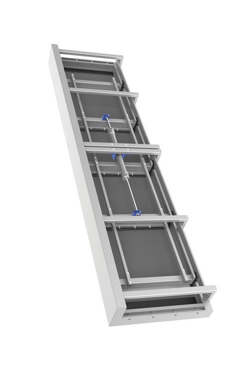 格柵_上方為緊急溢流排放口,當格柵自清洗系統失效或者格柵超載的時候,水流可以從格柵